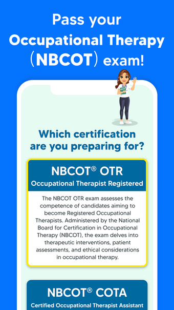 NBCOT Occupational Therapy OTR är en mobilapplikation designad för att hjälpa användare att förbereda sig för National Board for Certification in Occupational Therapy (NBCOT) examen. Med över 2500 frågor som täcker både OTR och COTA, erbjuder appen realistiska övningstester och quizzar för att öka chanserna att klara provet vid första försöket. Detaljerade förklaringar till varje fråga stärker förståelsen och hjälper användare att fokusera på viktiga begrepp.